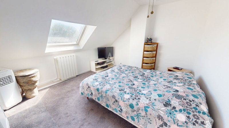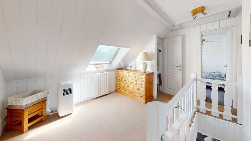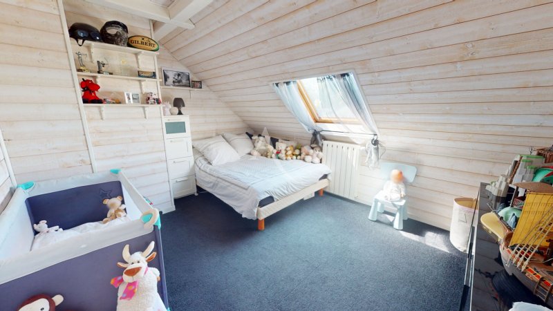 À l'étage, un palier dessert trois chambres lumineuses dont deux avec placards ainsi qu'un wc indépendant équipé d'un lave-mains.
