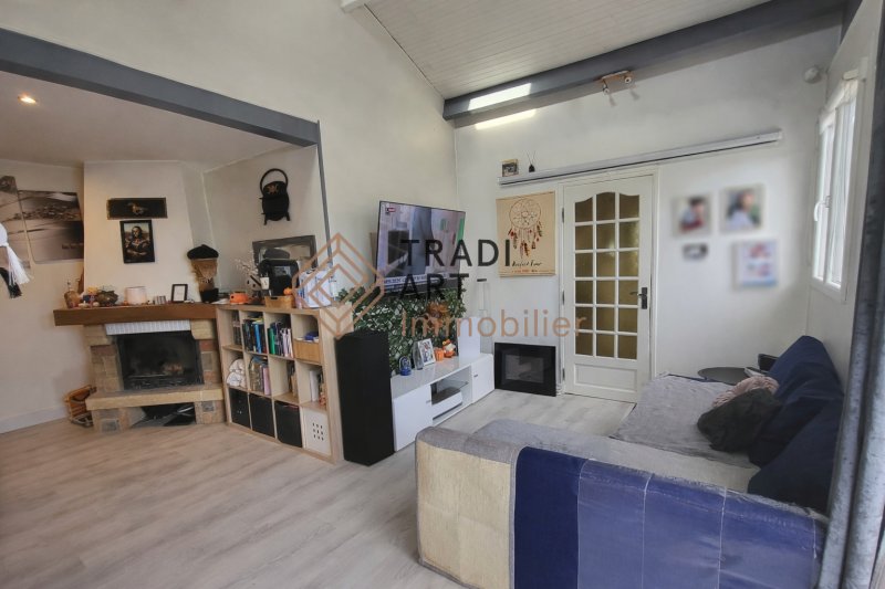 Pavillon individuel comprenant une entrée avec placard, une pièce de vie avec cheminée, une cuisine aménagée et équipée, deux chambres (12,13m²), une salle de bains, des wc séparés.