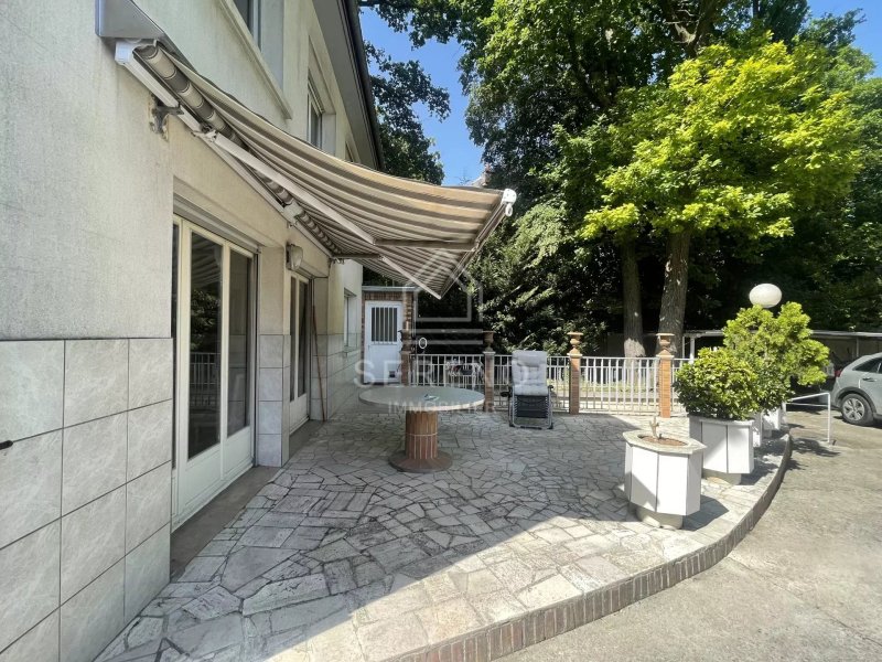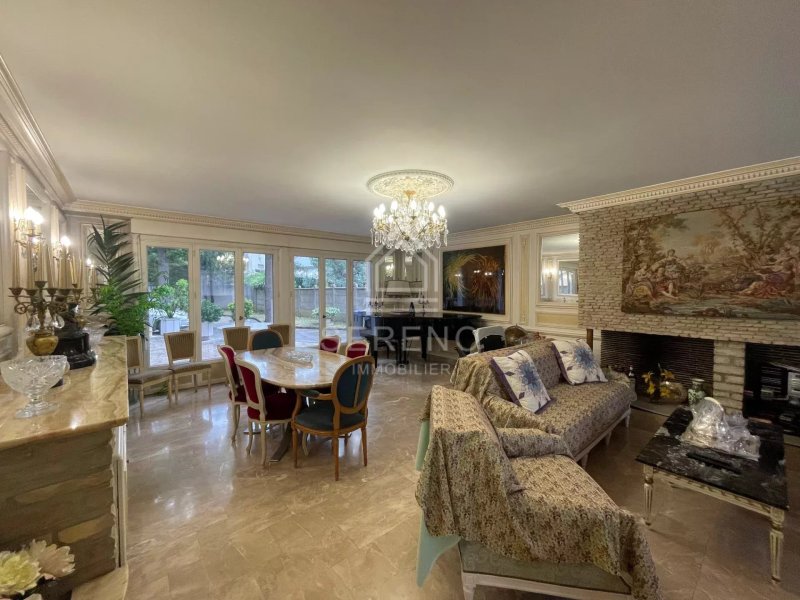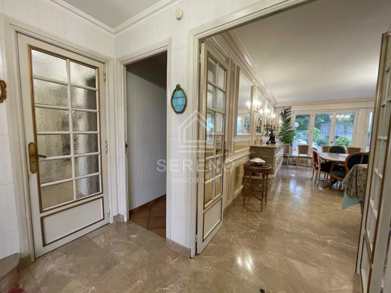 SERENO vous propose : A Morsang-sur-Orge, 91390, Essonne, dans le quartier du Parc de Beauséjour, proche tous commerces et 5’ voiture Tram et RER C Epinay ou Sainte Geneviève des Bois, belle villa lumineuse des années 1960 de 215 m2 utiles (186 m2 Carrez), non mitoyenne, lumineuse, double-vitrage et en retrait de l'avenue, en pierre, entièrement isolée par l’extérieur, avec accès privatif sur beau jardin avant et arrière, parcelle de 783 m2, y compris un passage latéral, sur cour, très bon état général, sols en marbre et parquet, toutes pièces carrelées et avec des décors , nombreux placards et rangements, escalier et porte d’entrée en fer forgé, comprenant sur trois niveaux: au rez de jardin, entrée, très vaste double salon traversant, avec cheminée-insert, (42m2) donnant sur une terrasse couverte sur cour, dégagement, coin repas de 10 m2 avec évier, cuisine indépendante, avec cheminée-barbecue, WC, bureau ou chambre d’appoint avec salle d’eau, donnant sur jardin arrière clair et très calme avec accès par sas séparé sécurisé, comportant un double parking couvert, rampe d’accès au sous-sol, possibilité de garer des utilitaires sans limite de hauteur, et en fonds de parcelle un...