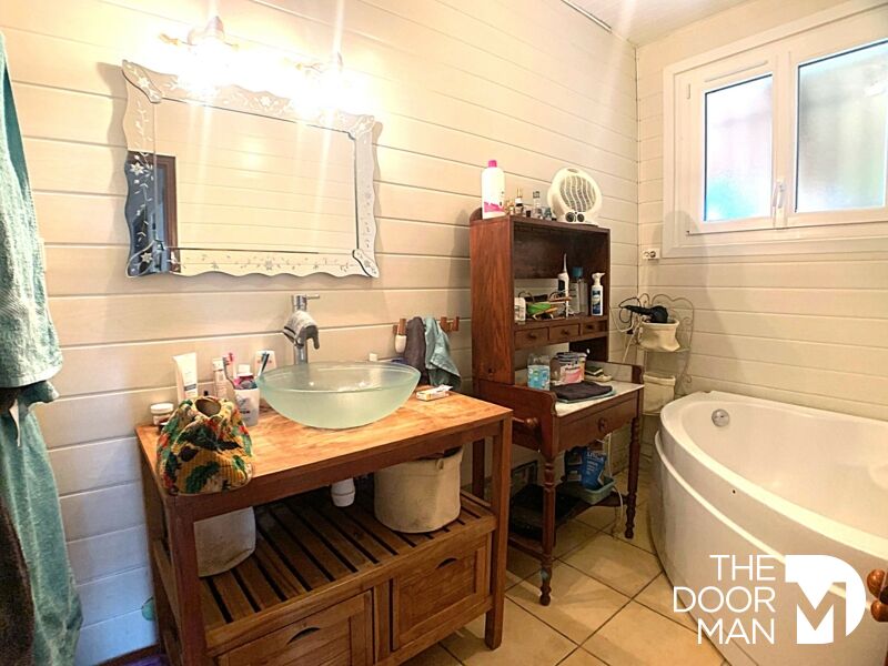 Vous disposerez en rez-de-chaussée d'un grand salon séjour avec son poêle à bois canadien pour un confort optimal en hiver, une cuisine aménagée avec accès sur la terrasse, une chambre, une salle de bains, un toilette et un cellier buanderie.