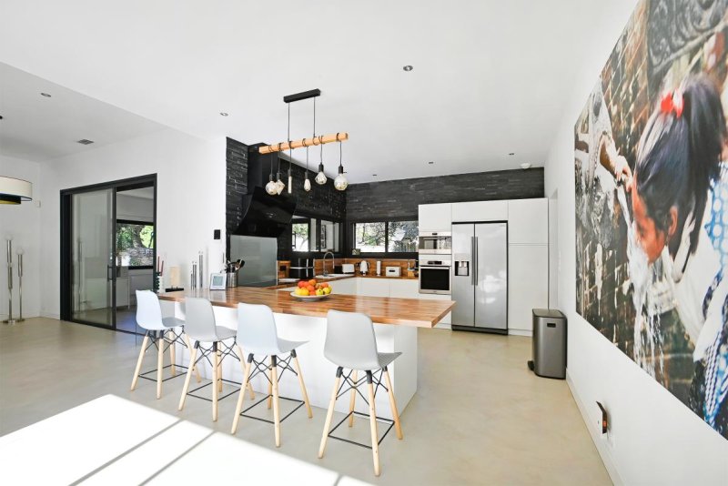 _Au rez-de-chaussée, une vaste pièce de vie conviviale prolongée par une cuisine américaine moderne, parfaite pour partager des moments gourmands, une suite parentale donnant accès sur la terrasse , un bureau de 15 m2, et enfin un espace d'été de 60m2 ouvert sur la piscine et sur un jardin méridional.