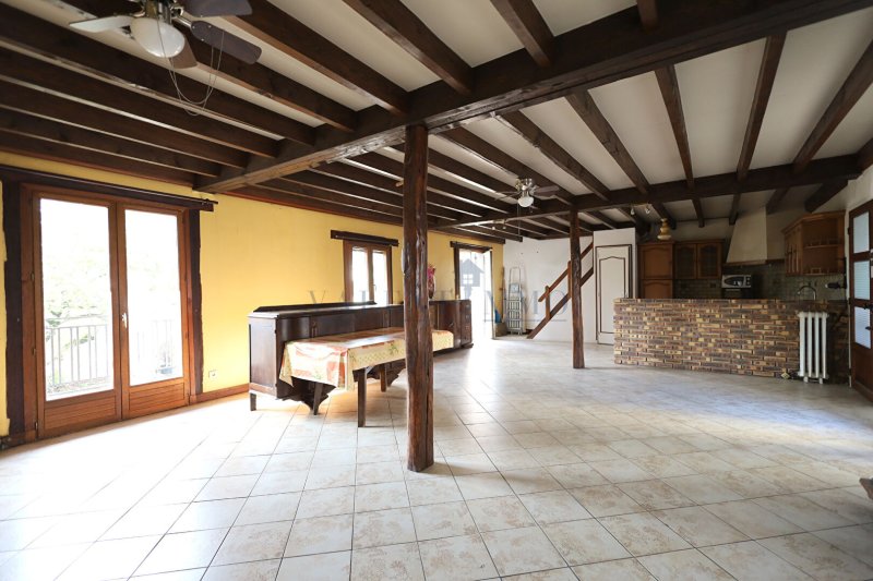 Au rez-de-chaussée : double séjour ultra spacieux de 70m² lumineux, cuisine américaine, une chambre, salle d'eau et WC séparé.