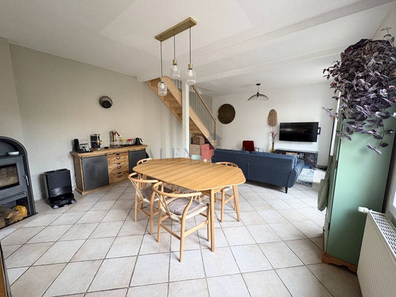 Rez-de-chaussée : double séjour spacieux et lumineux, cuisine semi-ouverte et équipée, salle d'eau avec fenêtre, WC.