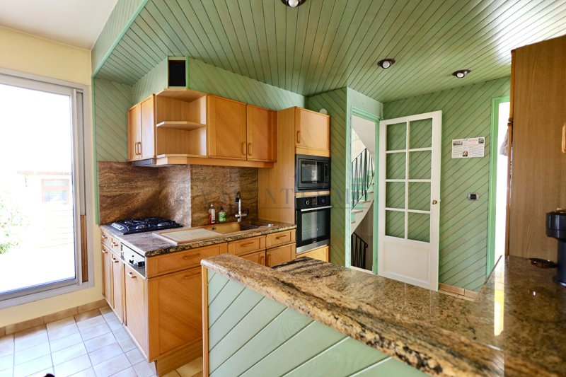 Au rez-de-chaussée : double séjour spacieux et lumineux exposé plein sud, cuisine, buanderie et WC séparé.