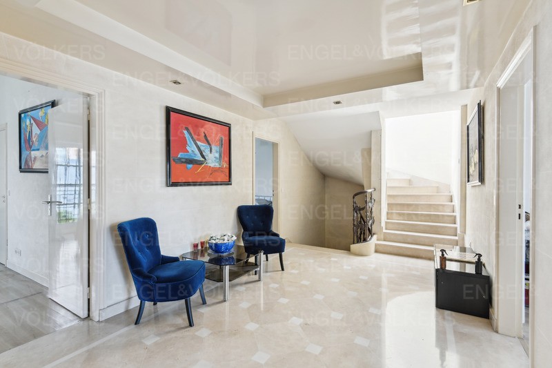 Répartis sur 4 niveaux, il se compose, au rez-de-chaussée, d'un espace de réception avec deux grands salons et cheminée, d'un bel escalier en bronze de Franck Evennou, d'une cuisine indépendante équipé, de plain pied avec salle à manger, ouvrant sur une terrasse et un jardin paysagé.