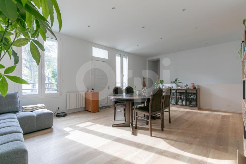 Nogent sur Marne, située dans le quartier pavillonnaire calme et agréable des Maréchaux, cette maison entièrement rénovée en 2022 de 111 m² habitables vous séduira par ses volumes et ses prestations soignées. Elle se compose au Rdc : d'une grande pièce de vie lumineuse de 36m², d'une cuisine ouverte aménagée et équipée avec son espace cellier/buanderie attenant, d'un wc séparés avec lave main, au 1er étage : 3 chambres avec une très belle hauteur sous plafond (3m) une salle d'eau moderne avec WC (à l'étage) et un ouvrant, en entresol une grande pièce de 26m² déjà aménagé, idéal pour créer une chambre, bureau (ou les 2 !) ou un un espace personnalisé selon vos besoins. Vous profiterez d'un jardin d'environ 50 m², idéal pour des moments en famille. En annexes : un emplacement de parking privatif et une cave complètent ce bien.