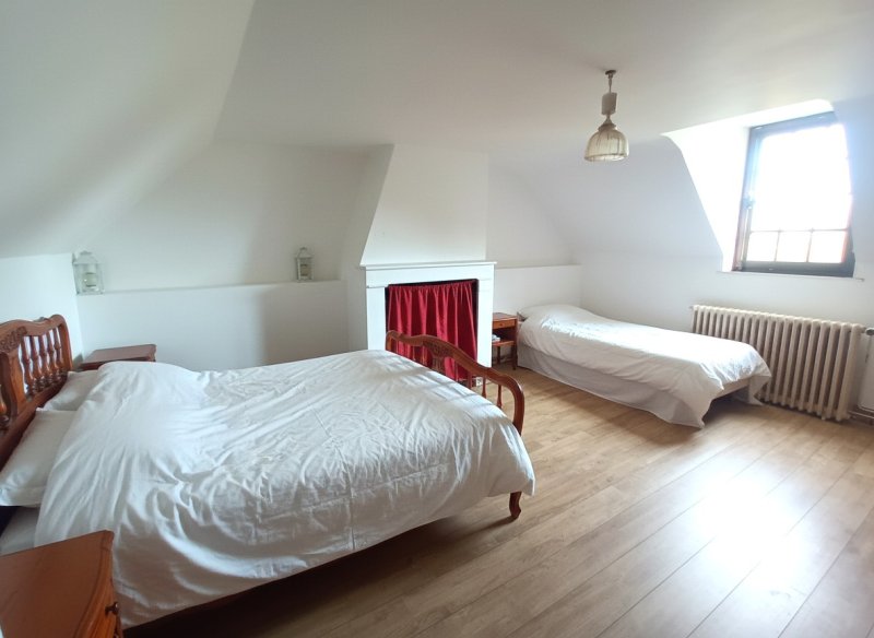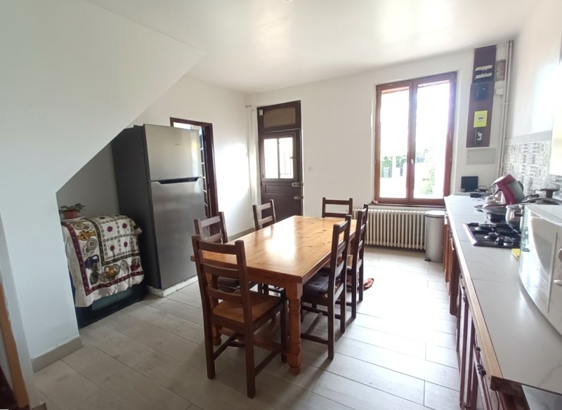 Syndixia vous propose cette maison mitoyenne offrant un cadre de vie pratique et fonctionnel. Au rez-de-chaussée, vous profiterez d'un séjour lumineux, d'une cuisine indépendante, d'une salle de bain ainsi que d'une pièce pouvant faire office de chambre ou de bureau selon vos besoins. À l'étage, l'espace nuit se compose de deux chambres. À l'extérieur, un très beau terrain d'environ 800 m2 sans vis-à-vis vous permettra de profiter pleinement des beaux jours en toute intimité. Les plus : chauffage au gaz, garage et cave complètent ce bien. Idéalement située, la maison bénéficie de commerces accessibles à pied et d'un accès rapide à la RN12, facilitant vos déplacements au quotidien. Un bien fonctionnel, idéal pour différents projets, à découvrir sans tarder ! DPE D GES D Montant estimé des dépenses annuelles d'énergie pour un usage standard entre 1700 EUR et 2300 EUR Mandat no180