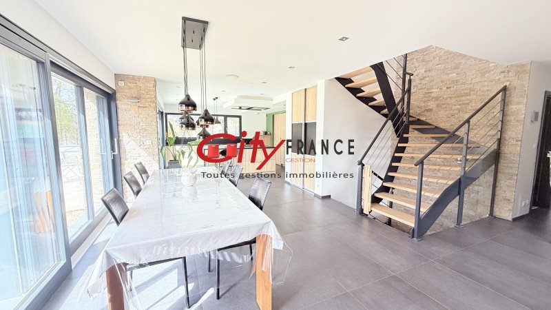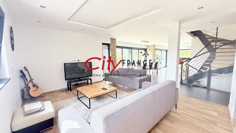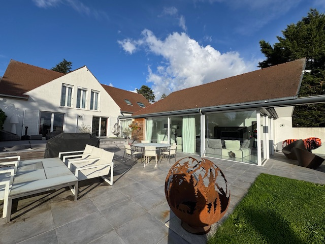 Au coeur du parc du château de Crespières, domaine privé, clos et sécurisé, dans un environnement calme et recherché, cette propriété contemporaine séduit par ses volumes généreux, sa luminosité et la qualité de ses prestations. Conçue dans une approche bioclimatique, la maison bénéficie d'équipements haut de gamme assurant un confort de vie optimal : triple vitrage, pompe à chaleur réversible, plancher chauffant au rez-de-chaussée et à l'étage, domotique complète, sonorisation intégrée, borne de recharge pour véhicule électrique, adoucisseur d'eau et alarme avec télésurveillance. Les matériaux et finitions ont fait l'objet d'une attention particulière : ardoises et pierres naturelles, cuisine haut de gamme, plafonds à LED avec variateurs. Dans une démarche écologique aboutie, la maison est également équipée d'un système de récupération des eaux de pluie alimentant notamment les sanitaires. Dès l'entrée, vous découvrez de beaux espaces de réception baignés de lumière, avec une circulation fluide entre les pièces. La maison propose plusieurs espaces de vie conviviaux ainsi qu'une chambre avec salle d'eau. L'espace nuit offre des chambres spacieuses, dont une suite parentale, dans une atmosphère calme et intimiste. Une belle hauteur sous plafond et une mezzanine viennent parfaire l'ensemble. À l'extérieur, le jardin et la piscine (7x3,5 m) créent un cadre idéal pour la détente, avec une terrasse de plus de 100 m². Une propriété rare sur le secteur, alliant confort, élégance et cadre de vie privilégié. A voir très vite ! Pour visiter ce bien d'exception, vous pouvez me joindre au 07 82 03 54 98 ou par mail à: elodie.guinard@gmail.com Honoraires à la charge du vendeur. Classe énergie A, Classe climat A Montant moyen estimé des dépenses annuelles d'énergie pour un usage standard, établi à partir des prix de l'énergie de l'année 2025 : entre 590.00 et 850.00 . Les informations sur les risques auxquels ce bien est exposé sont disponibles sur le site Géorisques : georisques.gouv.fr. Votre conseiller City France : Elodie GUINARD LEGER Agent commercial (Entreprise individuelle) RSAC 102291283