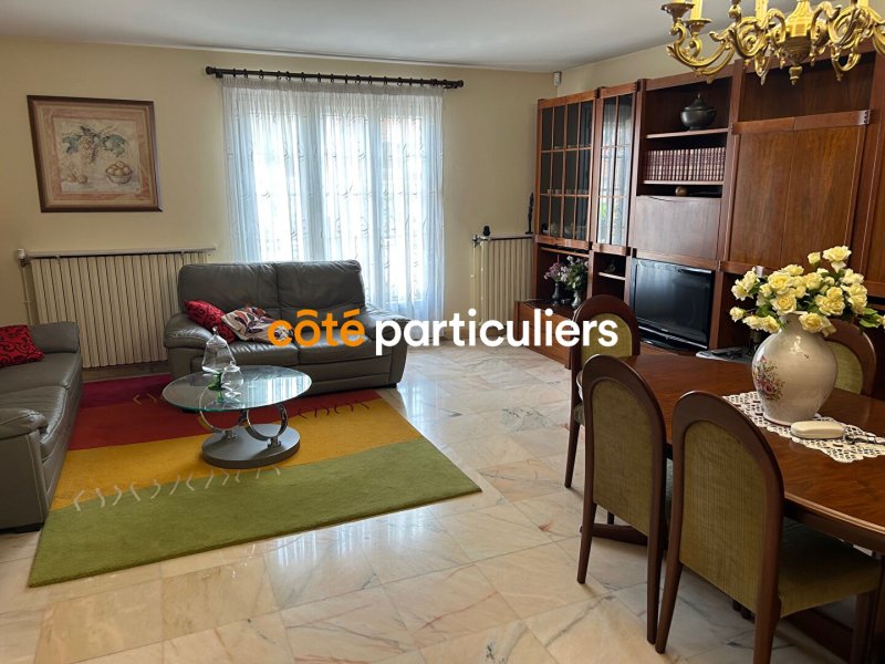 A l'étage : palier, séjour donnant sur un balcon filant, cuisine meublée et équipée donnant sur une terrasse de 25 m², deux chambres, salle de bains, WC.