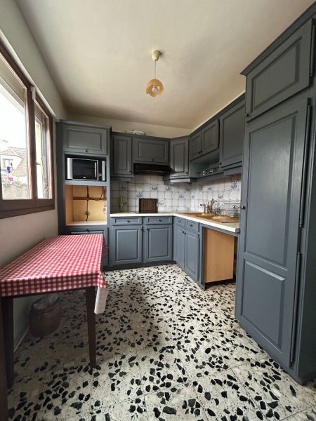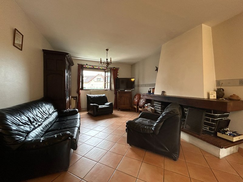 La maison comprend : une entrée, water-closet, cuisine, double séjour avec cheminée. A l'étage dégagement, 3 chambres, 1 bureau, 1 salle de bains, water-closet. Au deuxième étage: 2 chambres et une salle d'eau..