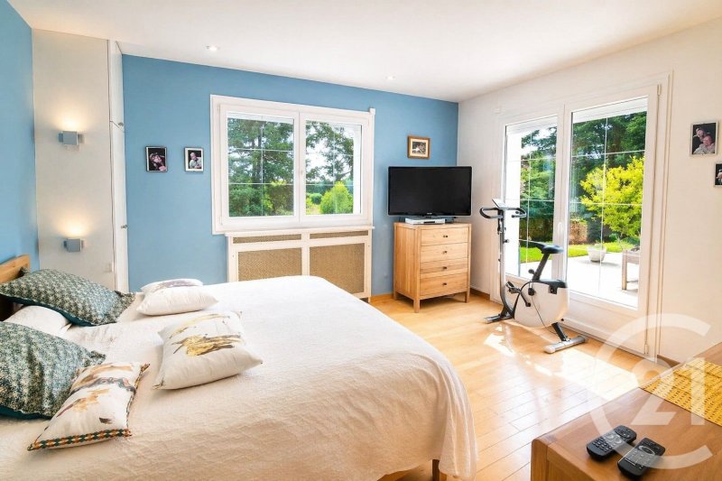 La maison se compose au rez-de-chaussée d'une vaste entrée, d'un double séjour lumineux ouvert sur une cuisine aménagée et équipée, de deux grandes chambres dont une suite parentale avec salle de bains, ainsi que des WC indépendants.