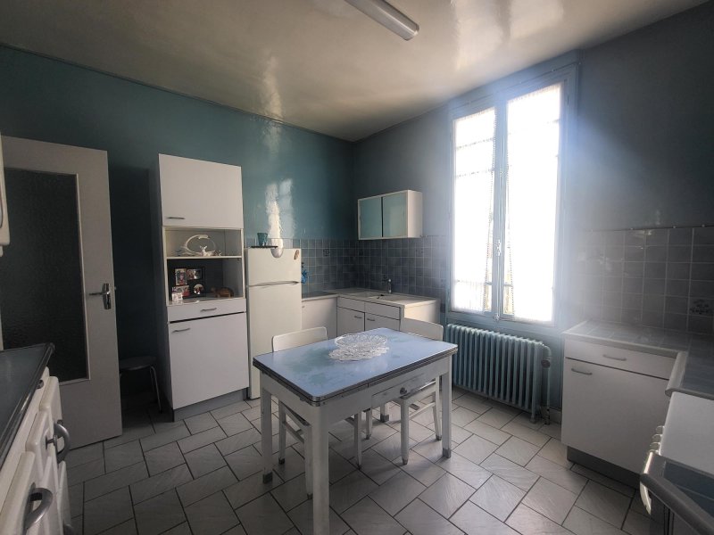 Une maison de 3 pièces de 66 m2 habitable comprenant : Sous-sol total : 2 pièces avec rangement, WC. Rez-de-chaussée surélevé : couloir, salle d'eau avec WC, grande cuisine, dégagement, séjour. 1er étage : palier, 2 chambres avec dressing. Chauffage central au gaz Jardin devant et à l'arrière. Dépendances. A rénover. Idéal 1er achat Possibilité garage
