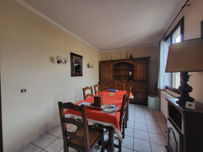 Baisse de prix !! Maison spacieuse de 7 pièces de 117.55 m2, idéalement située à proximité de la gare. Sous-sol : Deux caves. Rez-de-chaussée : Séjour, salon, couloir, WC, salle d'eau, cuisine aménagée et équipée, une chambre d'environ 15m2, véranda avec four à pizza 1er étage : Palier, quatre chambres, WC, salle d'eau avec douche et baignoire, deux petites pièces de rangement. Extérieur : Garage d'environ 24 m2 jardin Habitable de suite Prix : 327 000EUR (Frais d'Agence Inclus)