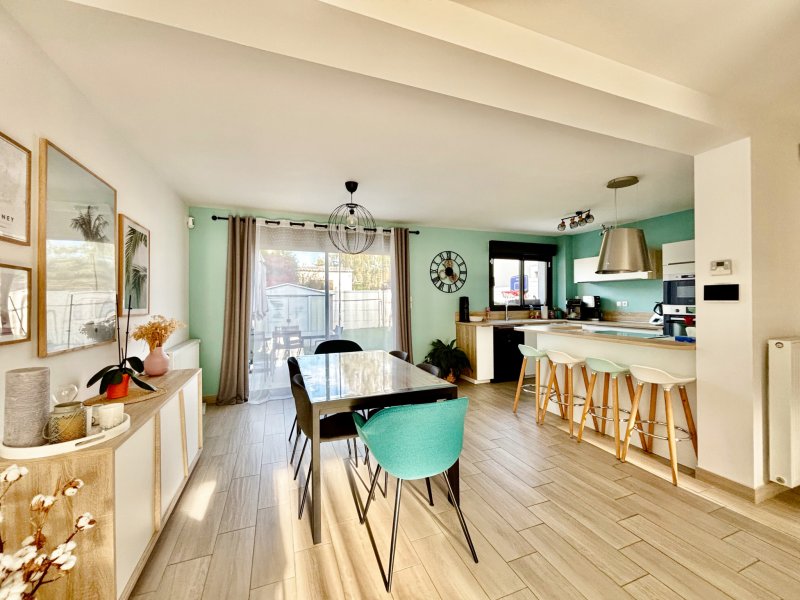 L'Étude Gindra vous propose cette superbe maison récente, édifiée en 2019 et encore sous garantie décennale. Elle est idéalement située dans le quartier recherché du Val du Muguet, à moins de 10 minutes en bus de la gare de Pontault-Combault. Elle se compose au rez-de-chaussée d'une entrée avec placard, d'une belle pièce de vie lumineuse avec cuisine ouverte d'environ 35 m2, donnant accès à la terrasse et au jardin, d'un WC suspendu et d'une buanderie. À l'étage, un palier dessert trois chambres, dont une suite parentale avec salle d'eau privative. Les combles sont aménageables, offrant un beau potentiel d'évolution. La maison bénéficie de prestations récentes et de qualité : pompe à chaleur air/eau, double vitrage, volets roulants électriques, DPE B et faibles consommations énergétiques. Une visite s'impose pour découvrir tout le confort et la modernité de ce bien ! Le prix affiché s'entend commission comprise, à la charge des vendeurs.
