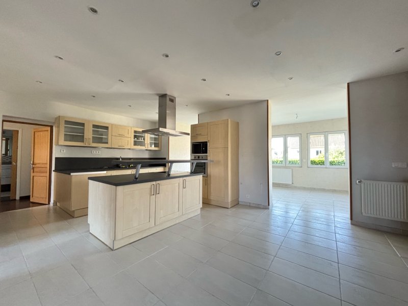 L'Étude Gindra vous propose cette maison spacieuse située dans un quartier résidentiel, à proximité de la gare. Elle se compose d'une entrée, d'un séjour avec cuisine ouverte, d'une salle à manger, de deux chambres dont une suite parentale et d'un WC au rez-de-chaussée surélevé. À l'étage, elle dispose de trois chambres mansardées et d'une salle d'eau avec WC. Le rez-de-jardin comprend deux grandes pièces pouvant servir de salle de jeux ou d'espace détente, dont une avec accès direct au jardin, ainsi qu'une chaufferie. Un garage vient compléter le bien. Le jardin, sans vis-à-vis, offre un cadre agréable. La maison bénéficie de prestations de qualité avec un parquet en chêne, des volets roulants électriques, un double vitrage PVC, une isolation par l'extérieur et des panneaux photovoltaïques. Le prix affiché comprend les honoraires d'agence à la charge des vendeurs.