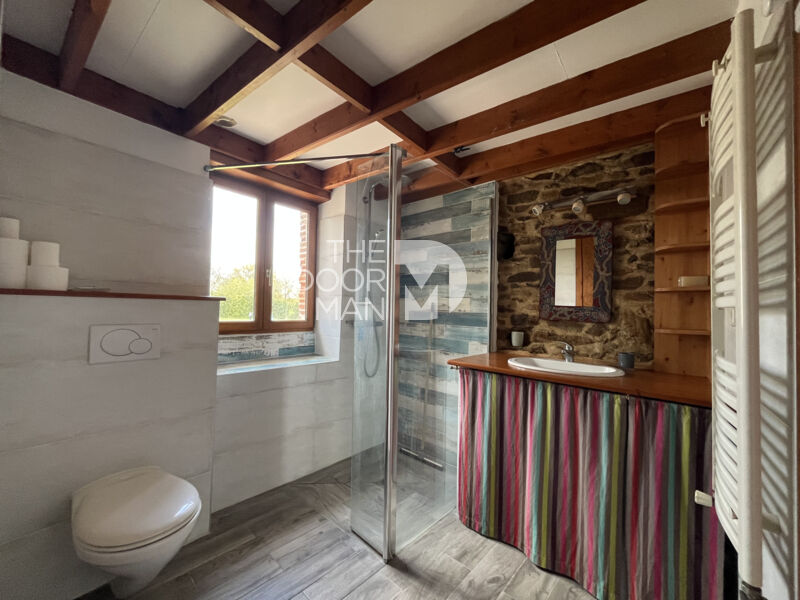 Maison ancienne de 102.80 m² composée d'un salon/séjour, d'une cuisine salle à manger, de 3 chambres dont 1 suite parentale avec dressing et salle de douche privative, une salle de douche avec wc.