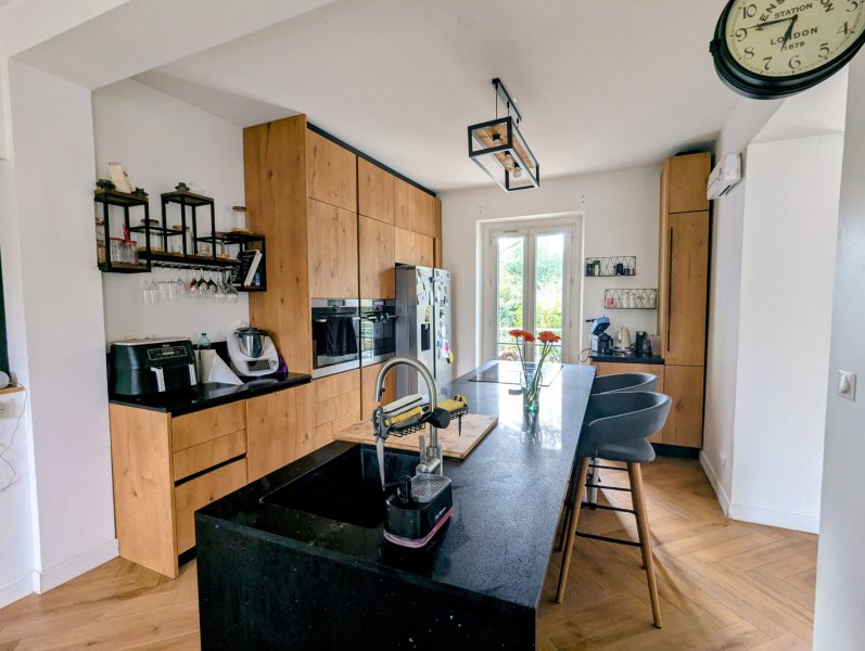 Située sur la commune recherchée de Beauchamp, découvrez cette charmante maison meulière édifiée sur un terrain clos et arboré, agrémenté d'une piscine et de deux garages. Au rez-de-chaussée, vous serez accueilli par une entrée desservant une cuisine dinatoire de 24 m2, idéale pour les repas en famille, ainsi qu'un séjour lumineux de 26 m2 ouvrant sur une terrasse exposée plein sud, parfaite pour profiter des beaux jours. Une chambre, une salle d'eau et un WC complètent ce niveau. À l'étage, un palier distribue une spacieuse chambre parentale avec dressing et salle de bains privative, équipée d'une douche moderne, ainsi qu'une deuxième chambre et une seconde salle d'eau. Au dernier niveau, vous trouverez un bureau et une chambre supplémentaire, offrant de belles possibilités d'aménagement (espace télétravail, chambre d'amis, salle de jeux...). Le tout est élevé sur un sous-sol total, offrant de nombreux espaces de rangement ou d'aménagement complémentaires. Maison rénovée avec goût, en bon état général, alliant le charme de l'ancien et le confort moderne. Un bien rare sur le secteur, à découvrir sans tarder
