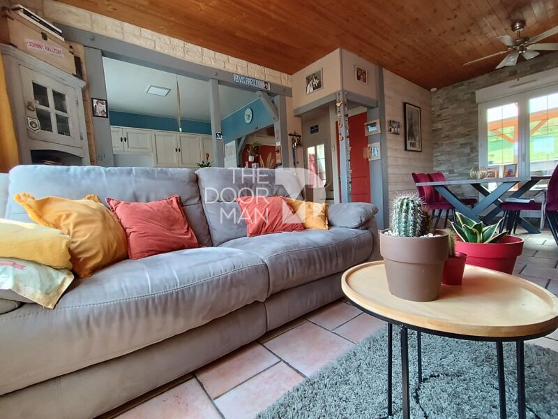 À l'extérieur, profitez d'un grand jardin arboré et d'une belle terrasse sous un élégant appentis en bois, parfait pour vos moments de détente ou vos repas en plein air.