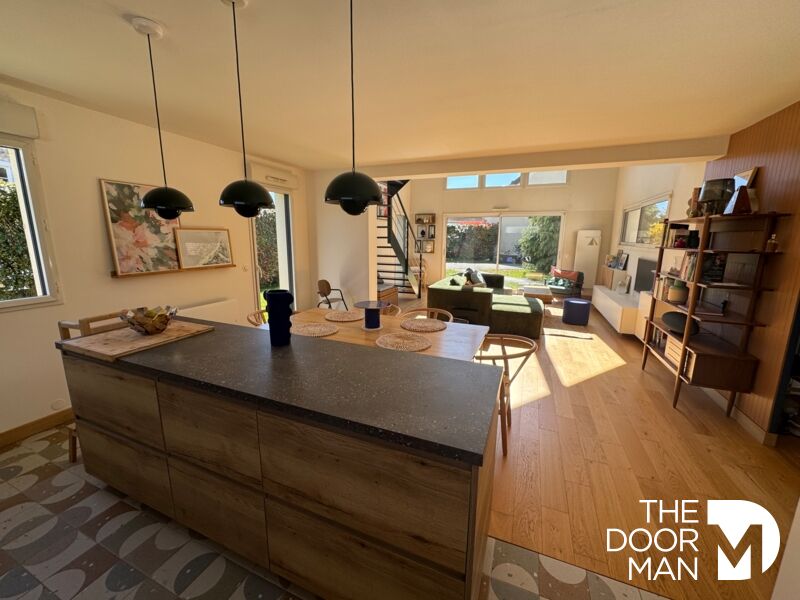 Maison individuelle de 2008 avec un jardin clos de 601 m² et un garage indépendant avec porte motorisée et espace grenier pour rangements. L'entrée (placard sur mesure) dessert un beau séjour cathédrale, une cuisine aménagée et équipée ouverte, un cellier attenant et 1 chambre avec SDD. Toutes les pièces d'eau et WC disposent de fenêtres. A l'étage, un agréable palier en mezzanine vous permet d'installer un espace bureau et un coin bibliothèque. Puis vous trouverez 2 chambres (dont 1 avec dressing) et une SDB (baignoire, douche et WC). Prix 549000 €. Honoraires d'agence 3.58 % TTC inclus à la charge de l'acquéreur.