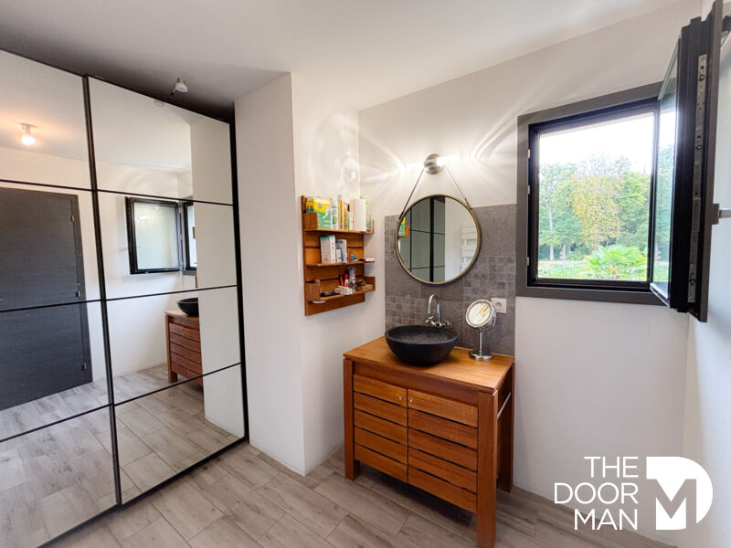 Côté technique : Grande terrasse extérieure, garage, pompe à chaleur permettant une économie d'énergie optimale (DPE : A), double vitrage aluminium, tout à l'égout, portail électrique et interphone.