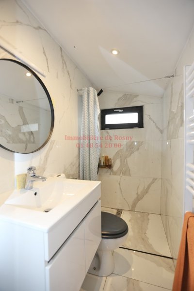Au calme dans une rue pavillonnaire, une maison entièrement rénovée en 2019 composée au rez-de-chaussée, d'une pièce à vivre lumineuse avec cuisine aménagée et d'une salle d'eau avec WC, à l'étage une chambre avec dressing. Terrasse de 15m2 avec abri de jardin. En quartier pavillonnaire, c'est le compromis parfait entre un appartement et une maison ! Centre-ville à 8min à pied et RER E Rosny-sous-Bois à 9min. Spécial investisseur