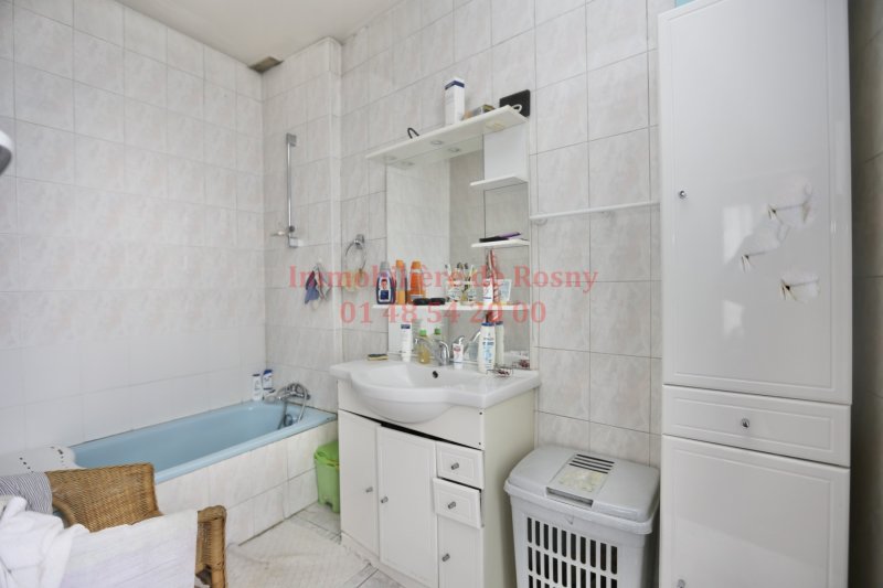 Emplacement parfait, maison d'une surface totale de 120m2 environ comprenant au rez-de-chaussée, une entrée, séjour / salle à manger avec accès terrasse, grande cuisine séparée, WC séparés. Au premier étage il y a 2 chambres dont une grande et une suite avec coin dressing et salle de bains, WC séparés, puis un 2ème étage avec une grande chambre et une autre salle de bains. Sous-sol total composé d'un bureau / chambre d'appoint, salle d'eau avec WC, cave, chaufferie et buanderie. Garage sur le côté de la maison. Chauffage et eau chaude par pompe à chaleur ! Maison de ville avec garage et petite terrasse à l'arrière. À 2min à pied du RER E Rosny-sous-Bois et du Marché couvert À 3min à pied des commerces (Boulangerie, supermarché, pharmacie...etc) Prévoir rafraichissement global