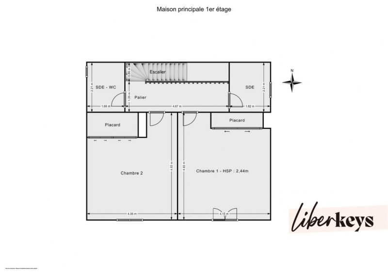 Au 1er étage, 2 belles chambres avec placards ~19m² dont une avec terrasse couverte et 2 salle d'eau dont une avec wc.