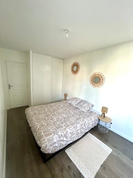 Entrée, séjour, cuisine, 2 chambres, dont 1 avec mezzanine, salle d'eau et WC.