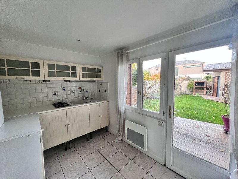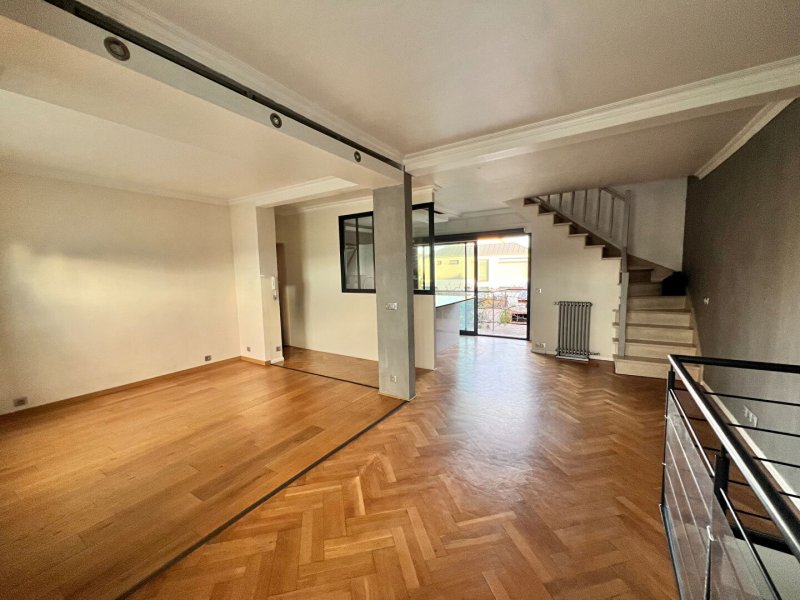 L' Agence à Frais Réduits vous propose, à 15 minutes gare à pieds, à proximité immédiate des transports, crèches et écoles, Maison élevée sur terrain de 187 m² offrant entrée, séjour double traversant avec cuisine ouverte donnant directement sur terrasse et jardin exposés Sud-Est , WC.