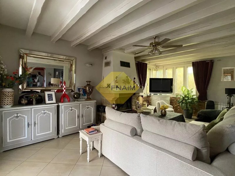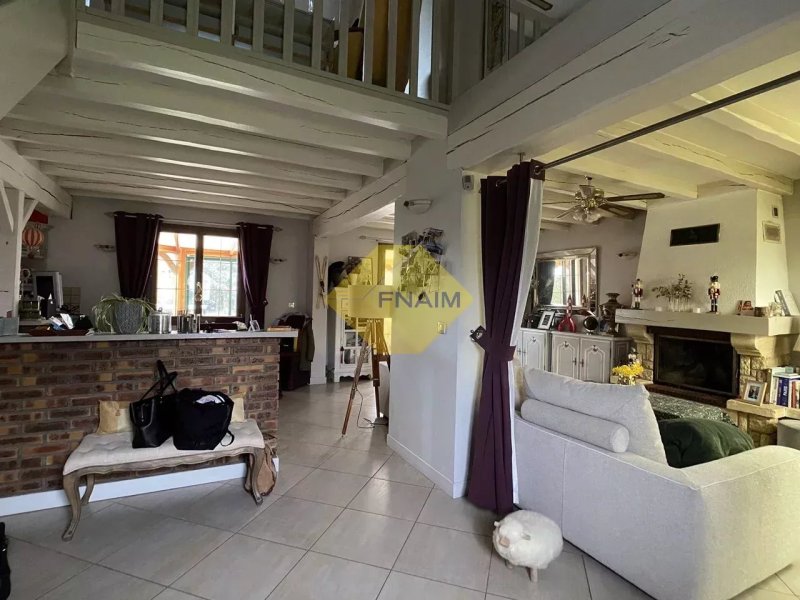 Séjour lumineux avec cheminée, véranda, cuisine américaine équipée, 5 chambres dont une au rez-de-chaussée, mezzanine, salle d’eau, salle de bains, 2 WC.