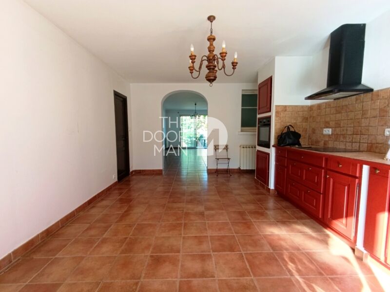 Une spacieuse cuisine indépendante, aux beaux volumes, avec accès direct au jardin