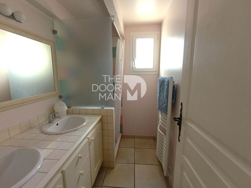Elle offre un vaste salon lumineux avec salle à manger et cuisine américaine équipée, quatre chambres, dont une spacieuse suite parentale à l'étage avec salle de bains et solarium, ainsi que deux salles d'eau et trois WC.