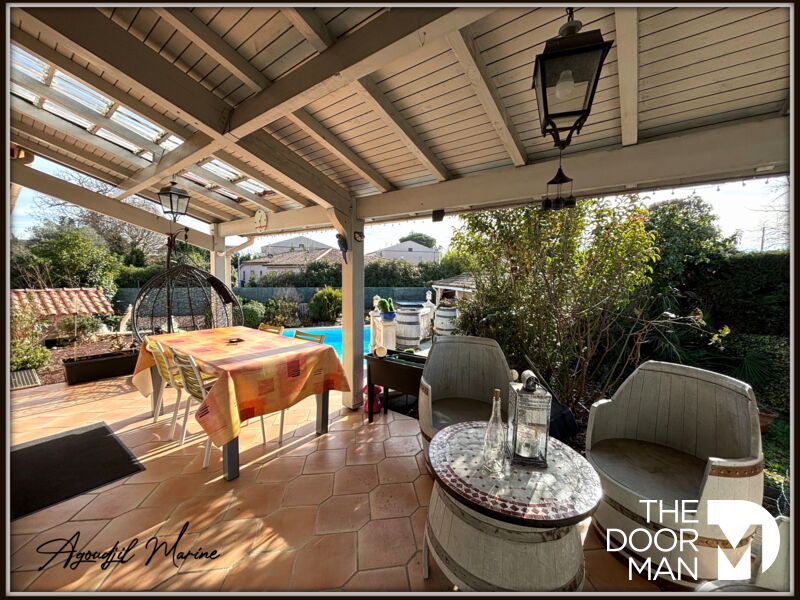 À l'extérieur, une grande terrasse avec barbecue donnant sur une piscine et un jardin avec arrosage automatique, offrant tout l'espace nécessaire pour profiter pleinement des beaux jours.