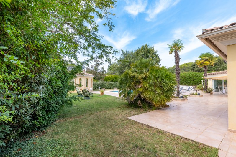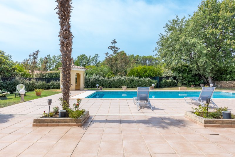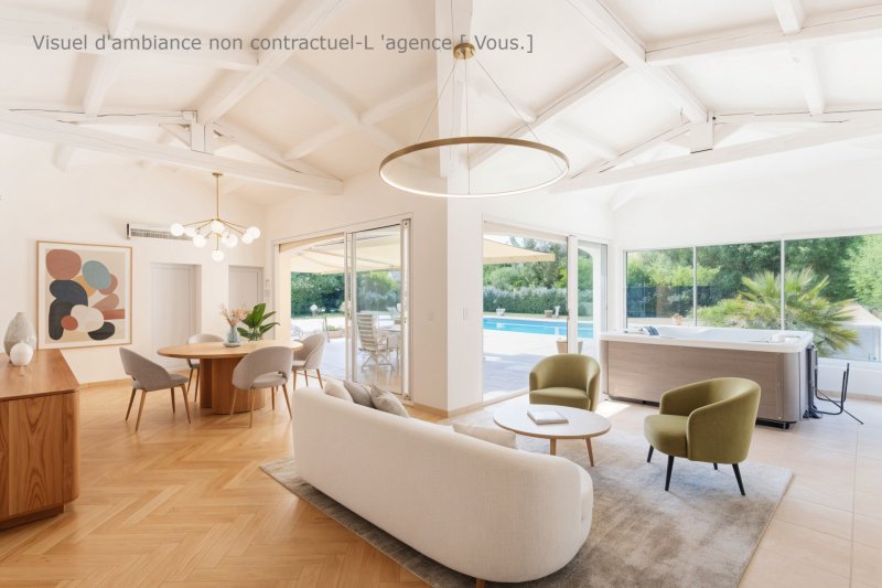 Exclusivité Agence VOUS Villa d'environ 230 m2 avec dépendance - piscine chauffée - 5 chambres Terrain 3456 m2 Proche Saint-Tropez Située dans un environnement calme, entre vignes et collines, à proximité immédiate de Lorgues et à environ une heure de Saint-Tropez, cette propriété développe environ 230 m2 habitables au coeur d'un terrain paysager de 3 456 m2. Elle se compose d'une villa principale et d'une dépendance indépendante, offrant un cadre de vie recherché en Provence. La maison principale, d'environ 182 m2, s'organise autour de beaux espaces de vie ouverts sur l'extérieur. Elle comprend un salon donnant sur les terrasses et le jardin, une salle à manger indépendante lumineuse, ainsi qu'une cuisine équipée. L'espace nuit propose cinq chambres, dont une suite parentale en rez-de-chaussée, complétées par trois salles de bains ou douches et quatre toilettes. Les volumes sont fluides, baignés de lumière, et pensés pour une circulation naturelle entre intérieur et extérieur. La propriété dispose également d'une dépendance indépendante de 45 m2, entièrement climatisée, permettant d'accueillir famille et amis ou d'envisager un espace de travail ou de loisirs. À l'extérieur, le terrain arboré de 3 456 m2, agrémenté d'oliviers, accueille plusieurs terrasses totalisant environ 330 m2, une piscine chauffée de 14 × 6 m avec rideau électrique, un jacuzzi ainsi que deux garages, dont un de 36 m2, et plusieurs stationnements. Côté confort, la maison bénéficie d'équipements complets : chauffage au sol par pompe à chaleur, climatisation, poêle à granulés, volets motorisés, baies vitrées en galandage, alarme, fibre optique, forage et arrosage automatique. L'ensemble est parfaitement entretenu et prêt à vivre. La configuration permet différents usages, en résidence principale ou secondaire, avec la possibilité d'une exploitation en location saisonnière. Le revenu locatif potentiel est estimé entre 45 000 EUR et 59 000 EUR par an. Pour tout renseignement ou pour organiser une visite privée, contactez M. Dominique Carrillo 06 51 85 22 47. Honoraires intégralement à la charge du vendeur.