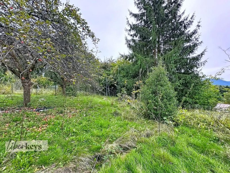 Côté extérieur, parcelle arborée et une partie plate surplombe la maison et permet de profiter d'une belle vue sur les montagnes environnantes.