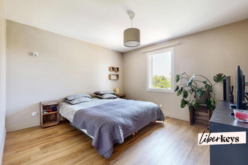 À l étage, une grande salle de bain avec douche, baignoire et WC, un dressing équipé, et 3 chambres.