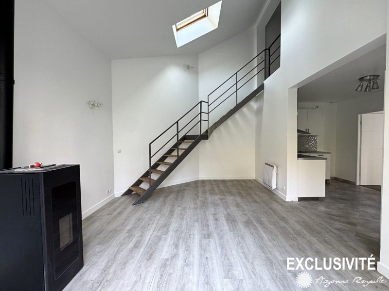SAINT GERMAIN EN LAYE Quartier Pereire Franklin 15'RER Calme Belle maison ancienne rénovée en 2011 sur 149m² de terrain clos. Au rez-de-chaussée : Cuisine américaine équipée pouvant être fermée + Séjour Cathédrale avec poêle d'une surface de 30m², l'ensemble donnant sur Terrasse et Jardin, une Chambre de plain-pied avec placard et Salle de Douche, WC. A l'étage : Grande Chambre avec Salle de Douche, WC et espace Buanderie. Environnement de qualité, très calme. EXCLUSIVITÉ AGENCE ROYALE - Elsa KROULEFF, à vos côtés pour tous vos projets immobiliers depuis 1988.