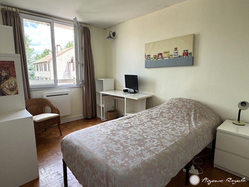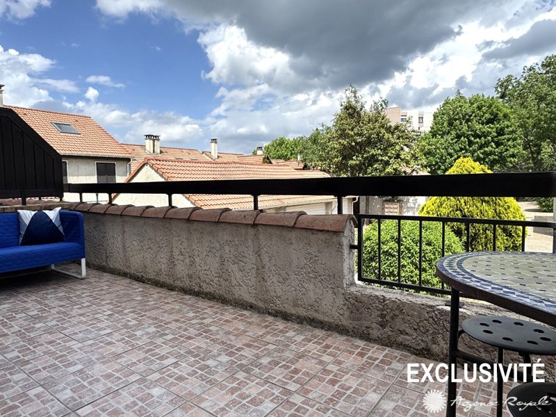 Maison de ville de 109m² avec deux belles TERRASSES : Entrée avec placard, Séjour 35m² sur Terrasse, Cuisine aménagée, 4 Chambres, 2 Salles de Bains, Sous-sol avec GARAGE 2 Voitures de 50m² avec Buanderie (Possibilité de Bureau indépendant).