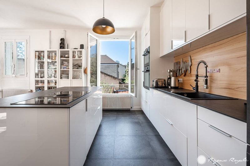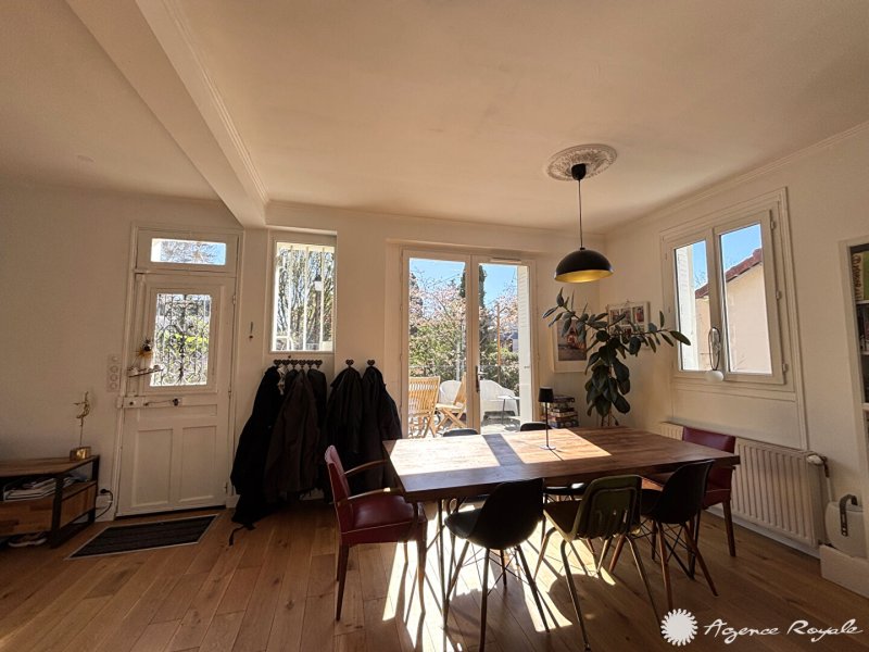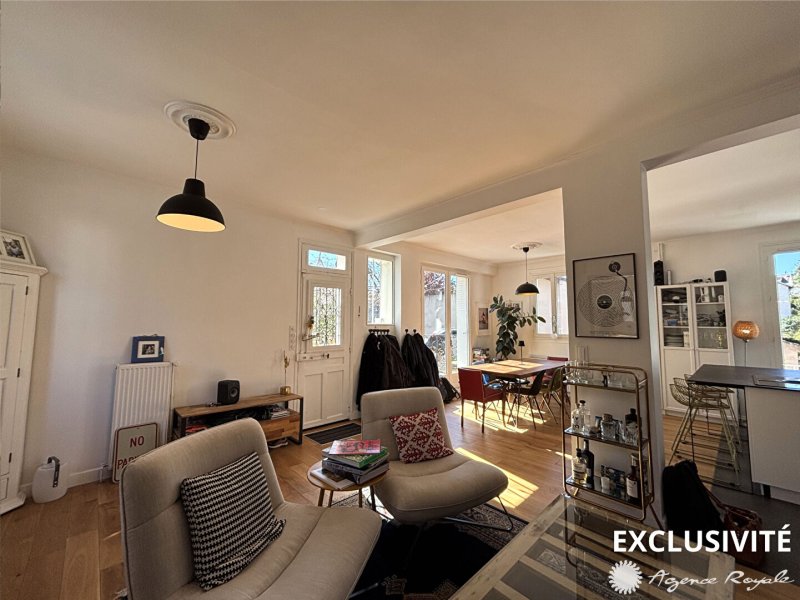 Belle Maison ancienne de charme rénovée sur 290m² de terrain arboré : Très beau Séjour SUD OUEST de 45m² avec parquet et poêle à bois donnant sur Terrasse et jardin, Cuisine américaine équipée, 4 belles Chambres de 10 -12-13 et 20 avec parquet et une avec mezzanine, Salle de Bains avec fenêtre, Salle de Douche avec velux, Bureau-Espace Buanderie, Grenier. Parking et Dépendance. Belle emplacement résidentiel, bus sur place.