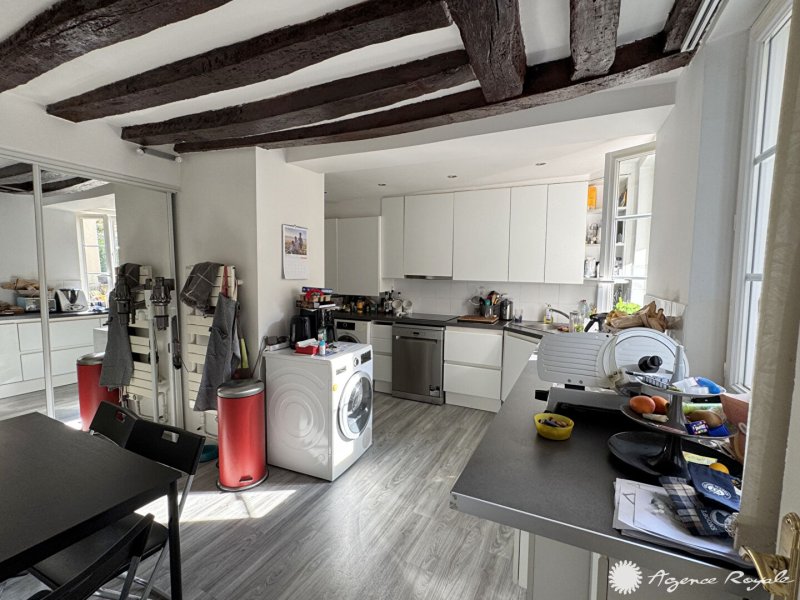 SAINT GERMAIN EN LAYE 10' RER A 10' du RER A et 5' de la place du marché. Dans immeuble ancien Triplex de 102m² loi Carrez (113m² au sol) : Entrée privative, Réception de 42m² avec cheminée et sol marbre, Cuisine équipée de 15m² avec espace repas, 2 Chambres avec parquet, 2 Bureaux avec parquet, Placards, Salle de Bains + Douche, Salle de Douche, Cave et Débarras pour vélos. Toiture neuve. Possibilité d'acquérir un Parking Sous-sol en sus du prix. EXCLUSIVITÉ AGENCE ROYALE - Elsa KROULEFF, à vos côtés pour tous vos projets immobiliers depuis 1988.