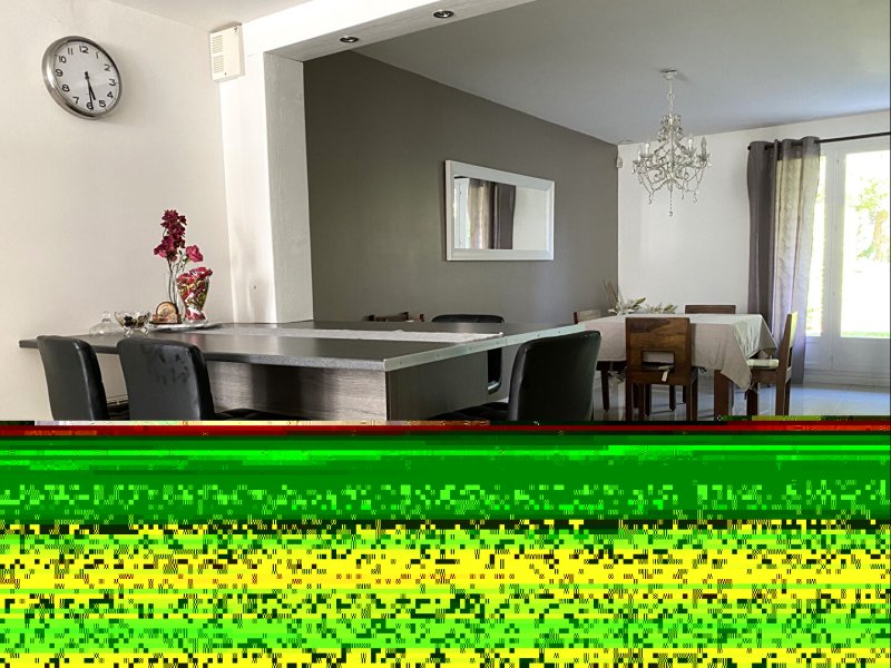 Maison de 135m² habitables sur 300m² de terrain : Entrée, Séjour de 36m² avec poêle à bois donnant sur Terrasse et Jardin, Cuisine américaine équipée avec Espace repas, 5 Chambres dont une plain-pied, 2 Salles de Douche, Dressing, Combles, Garage, Grenier. Grand espace vert commun accessible aux enfants.