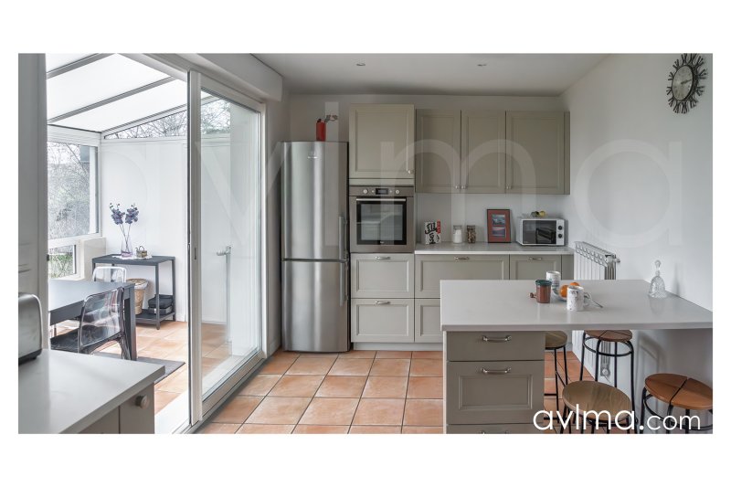 Dans un environnement familial et résidentiel proche du Lycée International, du collège des Hauts-Grillets, du lycée Léonard de Vinci ainsi que de l'institut Notre-Dame et de Saint Dominique, cette maison familiale indépendante d'une superficie habitable d'environ 145m2 bénéficie d'un agréable jardin. La maison est constituée par 3 niveaux: - au premier niveau se trouve un studio indépendant de presque 30m2, doté d'une salle de douche avec WC. Un garage attenant, une cave et un local chaudiere/buanderie complètent ce niveau. - le deuxième niveau constitue l'espace familial. Le grand salon avec cheminée bénéficie d'une luminosité appréciable, et se poursuit vers une pièce qui peut servir de chambre, bureau ou salle TV. La spacieuse cuisine aménagée se prolonge vers la véranda. - le dernier niveau, tout aussi lumineux et à la vue dégagée, est composé de deux chambres avec très grandes fenêtres de toit, une salle de bains, un bureau, une chambre parentale avec salle de douche. Cette maison mérite d'être visitée ! Contactez Vanessa Martinet (RSC Versailles 819 509 647): 06.18.40.32.99 A proximité des commerces, du tram 13, des bus pour rejoindre les collèges et lycées du centre ville. Honoraires 3,0% à la charge de l'acquéreur