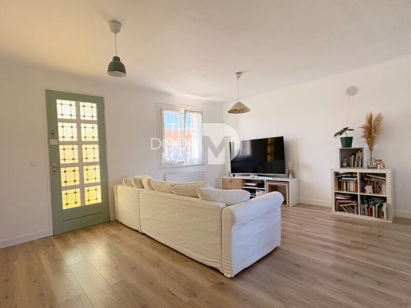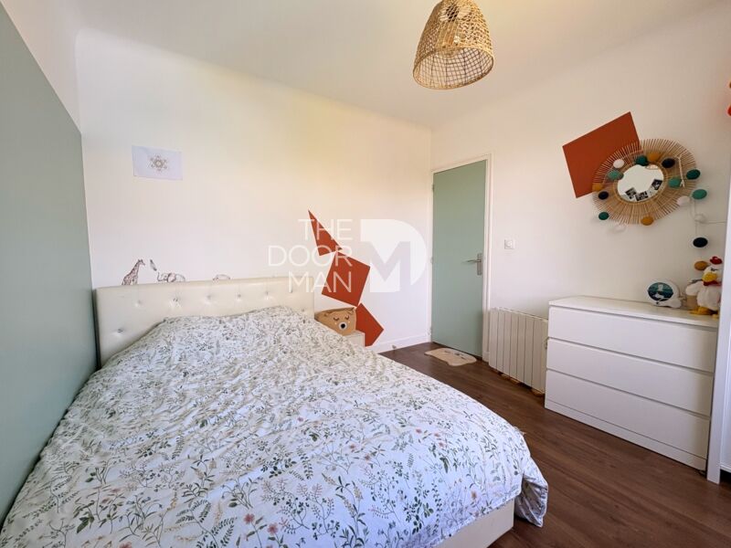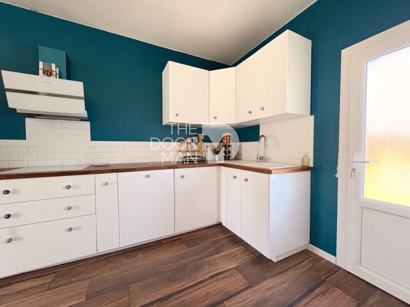 Cette maison lumineuse comprend une entrée sur cuisine aménagée et équipée, un vaste salon séjour sur parquet, deux chambres, et une salle de bain.