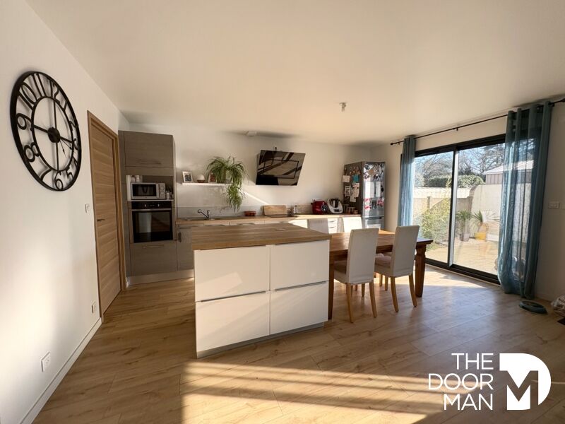 Une cuisine aménagée dinatoire, un séjour avec cheminée, trois chambres, un bureau, une salle de bains, un WC séparé ainsi qu'une grande buanderie.
