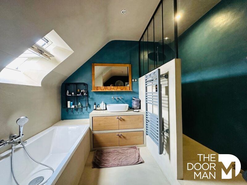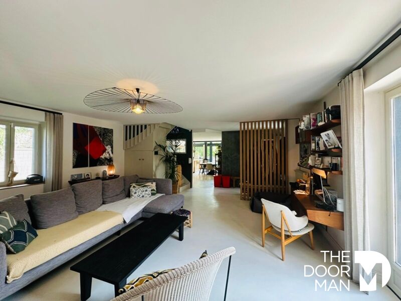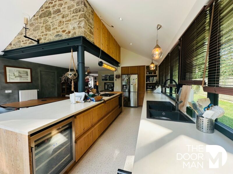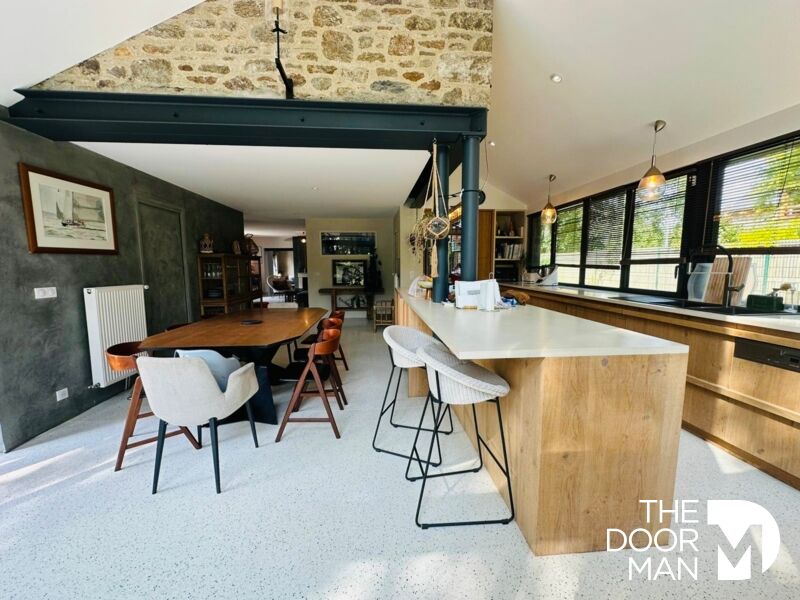 Dès l'entrée, les volumes s'ouvrent sur une belle pièce de vie baignée de lumière, dotée d'une cheminée, prolongée par une cuisine ouverte avec poêle à bois. L'ensemble donne sur une terrasse intimiste, agrémentée d'un jacuzzi et d'un jardin arboré aux essences fruitières. Le rez-de-chaussée comprend également un bureau indépendant, idéal pour le télétravail, ainsi qu'une pièce polyvalente à aménager selon les envies (atelier, chambre ...).