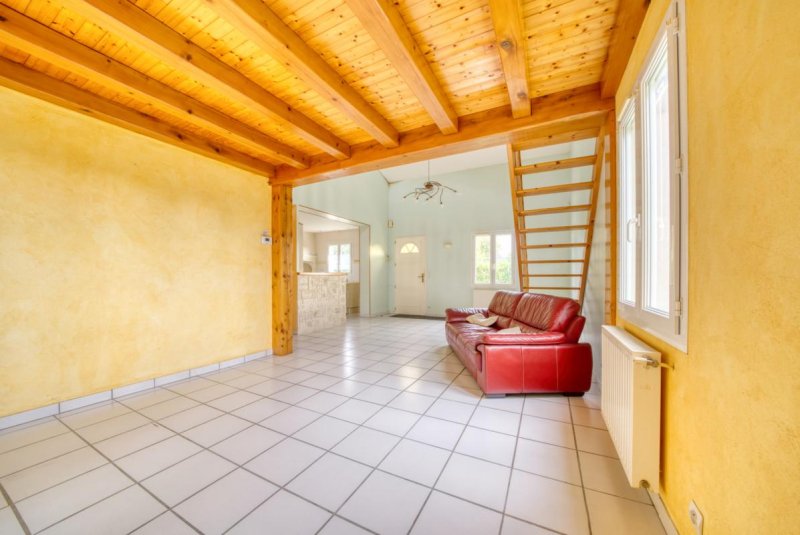 Un séjour lumineux prolongé d'une mezzanine de 15 m² (bureau, coin lecture ou salle de jeux),