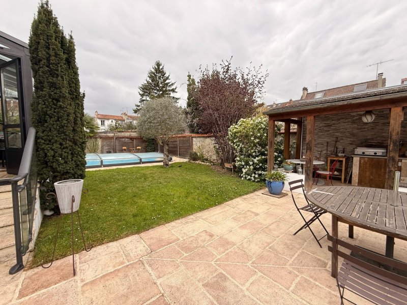 A deux pas de la très recherchée place des marronniers , de ses commerces, écoles et de sa qualité de vie, Superbe Villa d'une surface totale de 173.5m² sur un terrain de 1047m² au total (883m² + 164m² pour la maison louée ) . Elle se compose au rez de chaussée , d'un vaste séjour / cuisine US / véranda de 56.37m², une salle d'eau avec WC. Au 1er étage deux chambres (18.05m² et 12.22m²) , salle de bains et WC. Au 2eme et dernier étage deux autres chambres ( 22.34m² et 17.09m² au sol ). Sous sol total , chaudière au gaz Wiesmann. En fond de parcelle, cuisine d'été, dépendance de 27m² (actuellement salle de musique/cinéma) avec WC et lave mains. Belle piscine extérieure , Carport pour deux voitures. prestations récentes et de grandes qualités.