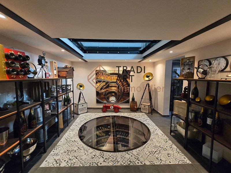 Le sous-sol a été entièrement aménagé en pièce de vie de 40m², grande cuisine professionnelle, wc séparés, garage, une pièce chaufferie/buanderie, ainsi qu'une splendide cave à vin Artois.