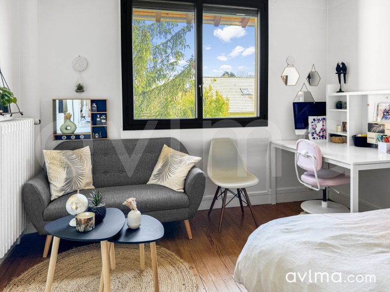 Située en plein centre du village, à proximité immédiate des écoles, des commerces et de toutes les commodités, cette belle maison individuelle n'attend que vous ! Édifiée sur un sous-sol total, elle offre une surface habitable généreuse et bien pensée. Au rez-de-chaussée, vous découvrirez une entrée accueillante menant à un vaste séjour lumineux de 42 m2, exposé Est/Sud-Ouest, agrémenté d'une cheminée pour des soirées chaleureuses. La cuisine équipée, spacieuse et fonctionnelle, s'ouvre directement sur le jardin, idéal pour les repas en plein air. Un bureau ainsi que des toilettes invités complètent ce niveau. À l'étage, un palier dessert quatre belles chambres, toutes dotées de placards intégrés, ainsi qu'une grande salle de bain+douche et toilettes. Les combles, anciennement aménagés, offrent un espace de 28 m2 habitables (50 m2 au sol), parfait pour créer une salle de jeux, un bureau ou une suite parentale. Le sous-sol total comprend : un double garage, une pièce de sport chauffée avec fenêtre, une cave/pièce de rangement, une buanderie/chaufferie pratique et bien agencée. Le tout est implanté sur un terrain clos de 460 m2, arboré et offrant la possibilité d'y aménager une piscine. Une maison idéale pour une vie de famille confortable dans un cadre paisible et pratique. À visiter sans tarder !