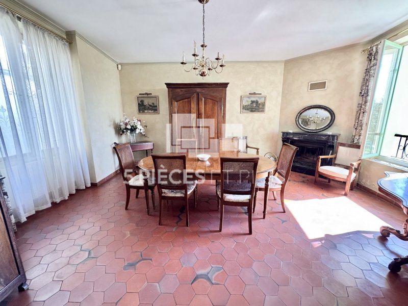 - Au rez-de-chaussée :d'une entrée, de belles pièces de vie avec une salle à manger cheminée, une cuisine de près de 30 m2 avec tomettes au sol et un accès de plain-pied au JARDIN. Un bureau, des toilettes avec point d'eau et une buanderie complètent ce niveau.